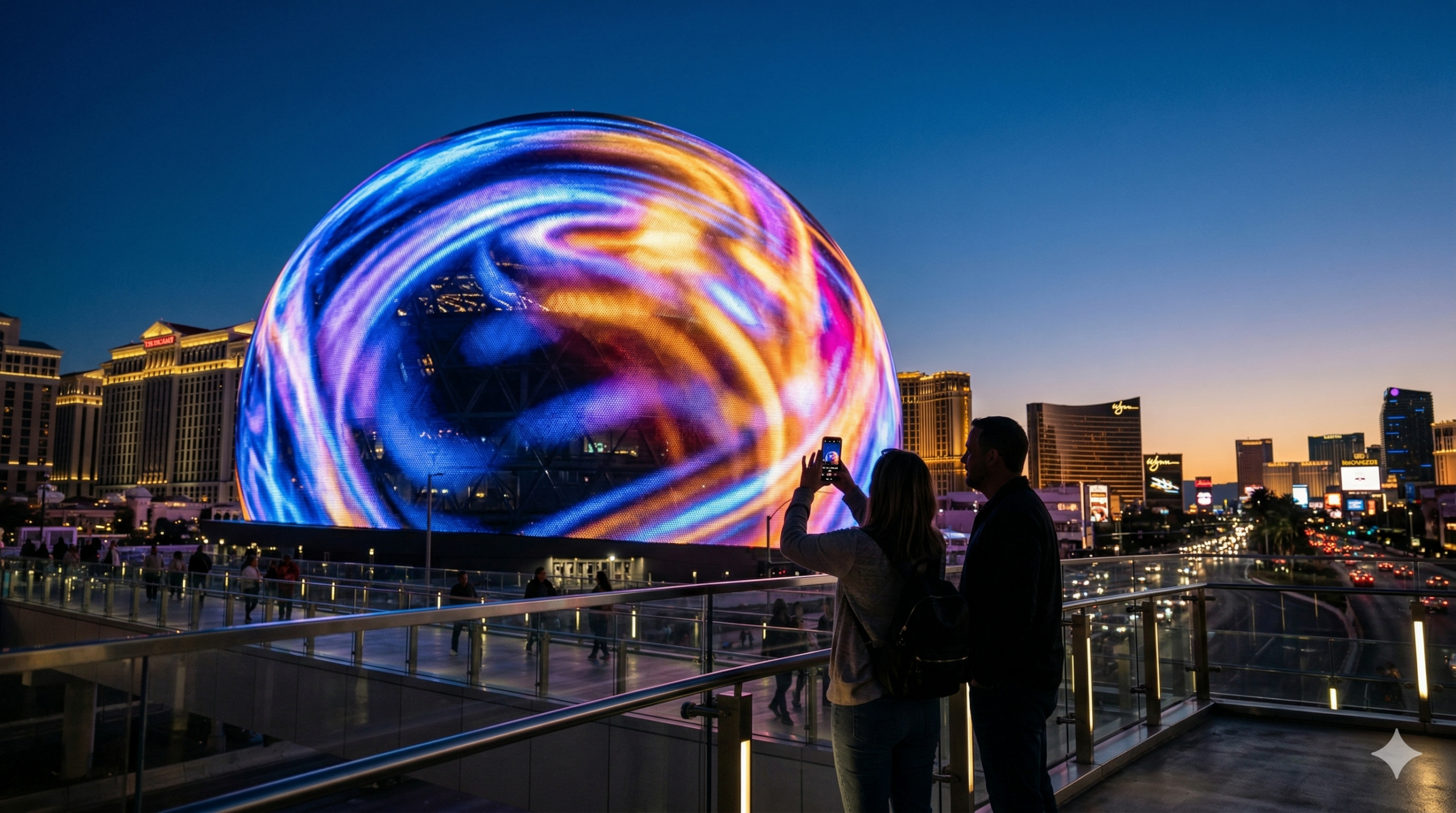 You’re walking east along Sands Avenue, maybe heading back from the Venetian after a long evening on the Strip, when it stops you cold. The Las Vegas Sphere rises above the roofline without warning — a glowing, impossible orb the size of a skyscraper tipped on its side, its surface rippling with color and motion so vivid it looks like something dreamed up for a science fiction film. Your hand is already reaching for your phone before your brain catches up. That reflex is completely correct. The Sphere is one of the most photogenic structures ever built, and in 2026 it remains the single most talked-about new landmark on the entire Strip. But knowing how to photograph the Las Vegas Sphere well — rather than just snapping a blurry blob of light — takes a little preparation. This guide covers exactly where to stand, when to show up, and which settings to dial in, whether you’re shooting on an iPhone or a Canon Rebel.